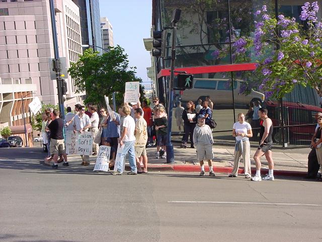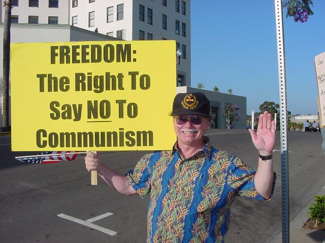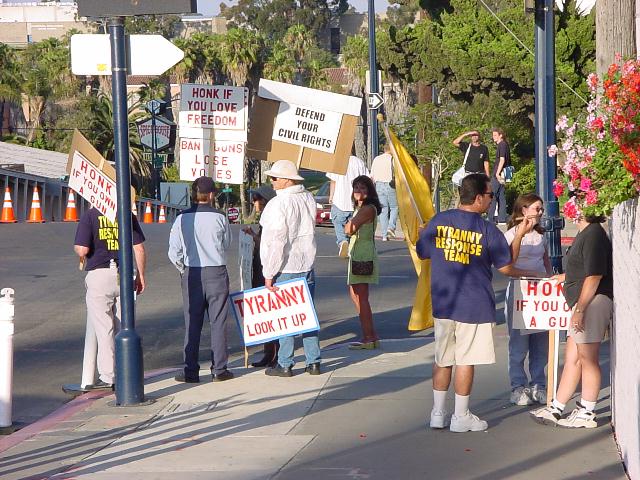The San Diego Tyranny Response Team and local San Diego FReepers rallied about 100 people to protest Klinton and Davis this afternoon. The local TV stations were largely shut out of the event inside the El Cortez, so the spent time working the sidewalks. Many interviews occurred with mainstream TV and radio station reporters. It was a good opportunity to get our message of freedom out while the liberals were inside gabbing with Klinton.