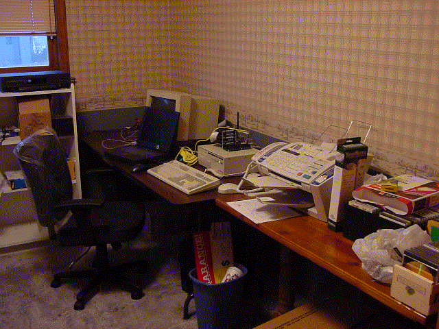 December 2000 - My office setup with Federal Railway Admin hardware development system and new fax machine