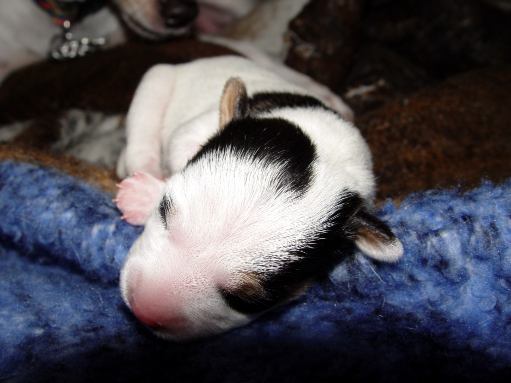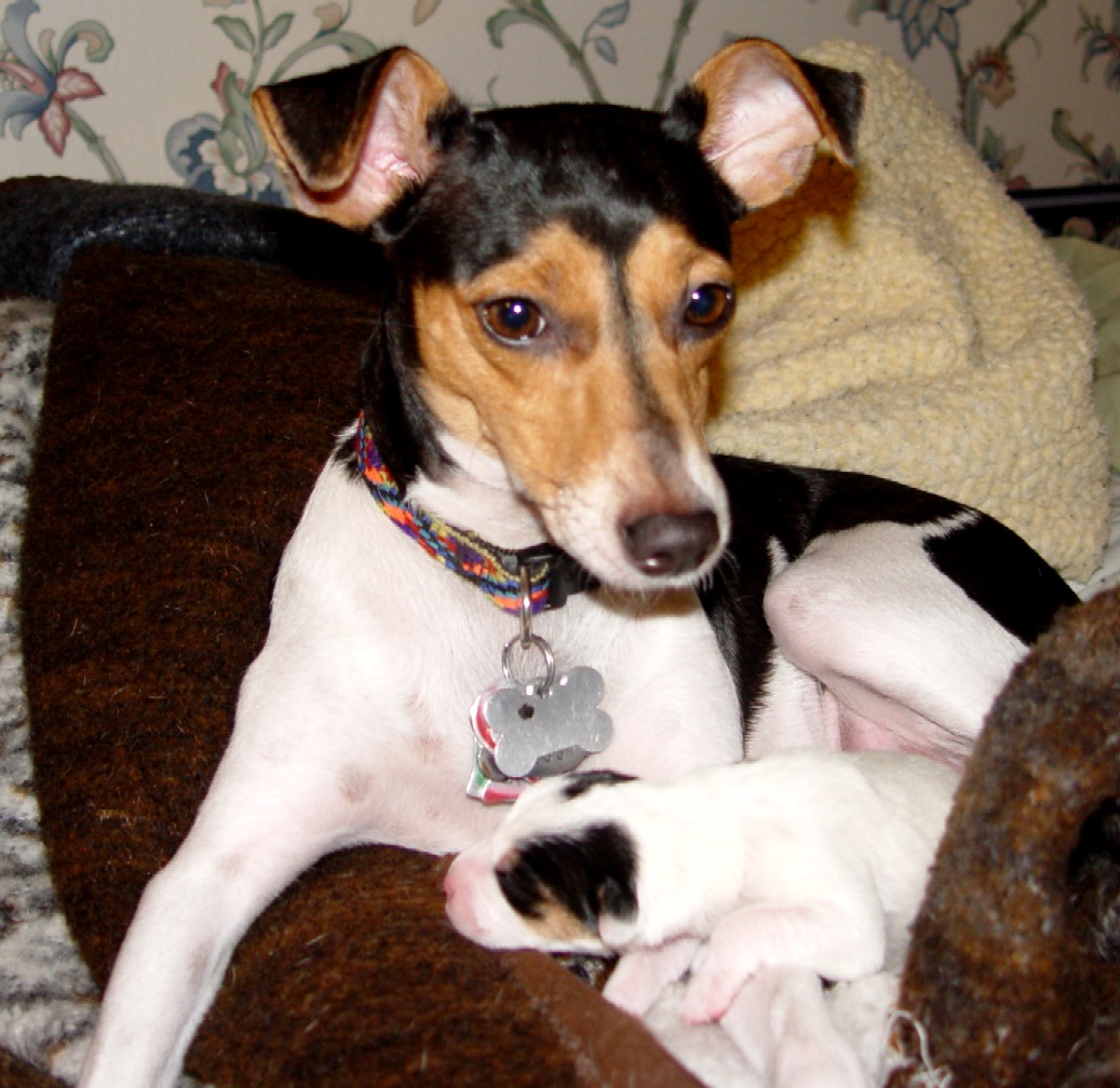 Proud mama Ceri with the new puppy on October 13, 2004